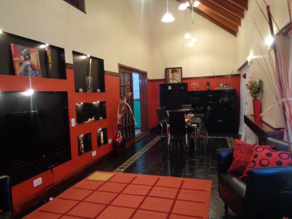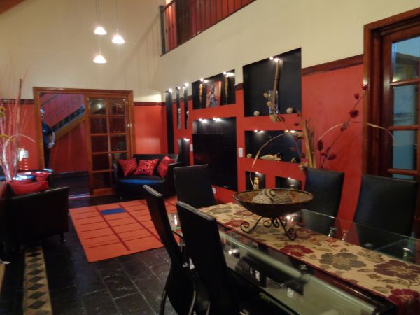 Propiedad construida en dos plantas. Planta Baja: Garaje con piso cerámico y paredes ceramicadas; lavadero ceramicado con temotanque; baño toilette ceramicado; cocina ceramicada con mesada de granito negro, bajo mueble, alacena en madera, spar, isla con mueble con pisos de porcelanto; comedor diario con estufa y pisos de porcelanato; patio atrás con piso cerámico de 13 x 3 metros con parrila; living-comedor con piso de laja negro. Planta Alta: un dormitorio principal con placar empotrado y aire acondicionado; dos dormitorios con piso flotante con placar de madera; un baño azulejado completo con pisos de procelanato.