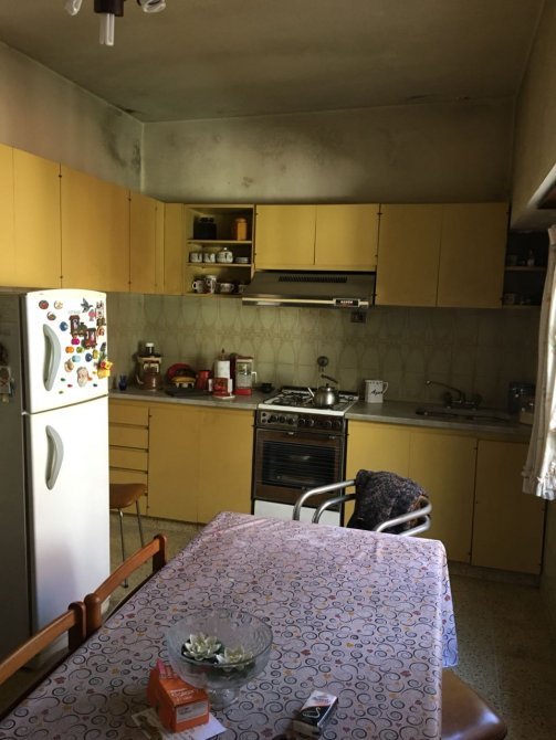 - Casa con ingreso por 1º de Mayo compuesta por living-comedor con piso cerámico; cocina con pared azulejada y piso de mosaico, bajo mesada y alacena en formica, mesada de granito con bacha; un baño azulejado completo con mesada de granito y bajo mesada, inodoro, bidet y ducha; dos dormitorios alfombrados; garaje con piso cerámico; patio con piso baldosa y parrilla; un baño azulejado en el exterior; lavadero con pared azulejada y terraza.