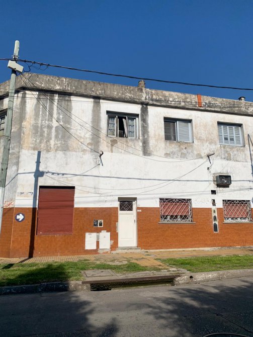 Departamento en Planta Baja al Frente compuesto por dos dormitorios uno con piso de parquet y otro con piso de mosaico; comedor diario con piso de mosaico; cocina con piso cerámico con mesada, bajo mueble y calefón; un baño azulejado con inodoro, lavamanos y ducha; patio con cuarto de enseres.