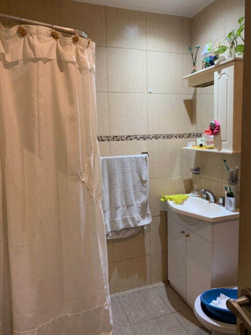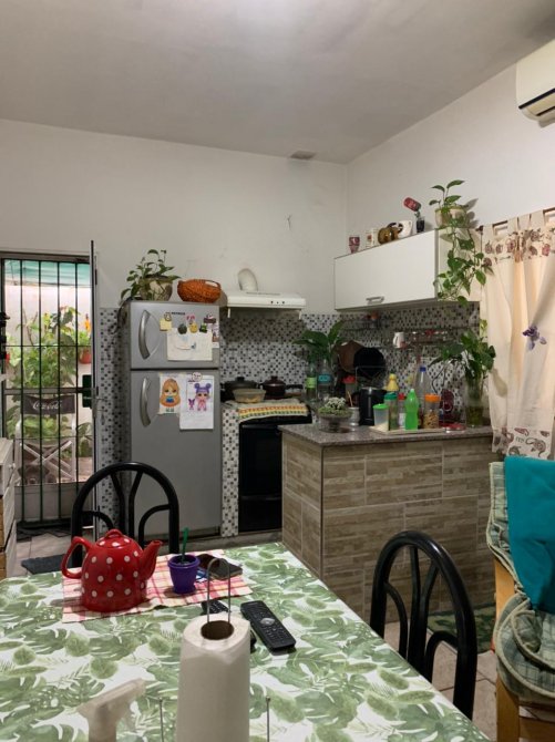 Departamento al Frente con garaje con portón; cocina-comedor con piso cerámico, pared ceramicada, bajo mueble y alacena de melamina y desayunador; dos dormitorios con piso cerámico; un baño ceramicado completo con inodoro, bidet, ducha y vanitory; patio con piso cerámico y lavadero; terraza.
