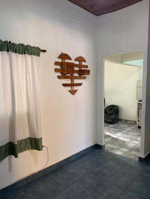Casa compuesta por living con piso cerámico; cocina-comedor con piso y pared ceramicada, mesada, bajo mueble y alacena de melamina; dos dormitorios con piso cerámico; un baño ceramicado completo con inodoro, bidet, ducha y vanitory; patio con pileta para lavar; terraza.
