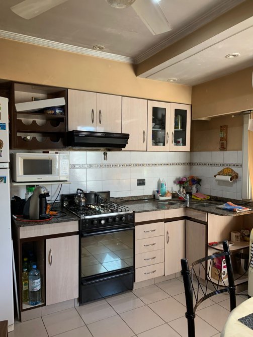 Casa compuesta por: - Planta Baja: Garaje para dos autos y patio al fondo. Garaje con posibilidades a futuro local. - Primer Piso: Propiedad compuesta con living-comedor con piso cerámico; cocina-comedor con piso y paredes revestidas en cerámica con mesada de mármol, bajo mueble y alacena de melamina; un baño ceramicado completo con vanitory, inodoro, bidet y bañera; dos dormitorios alfombrados y con placard empotrados cada uno.