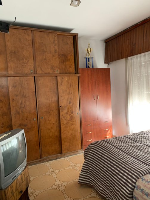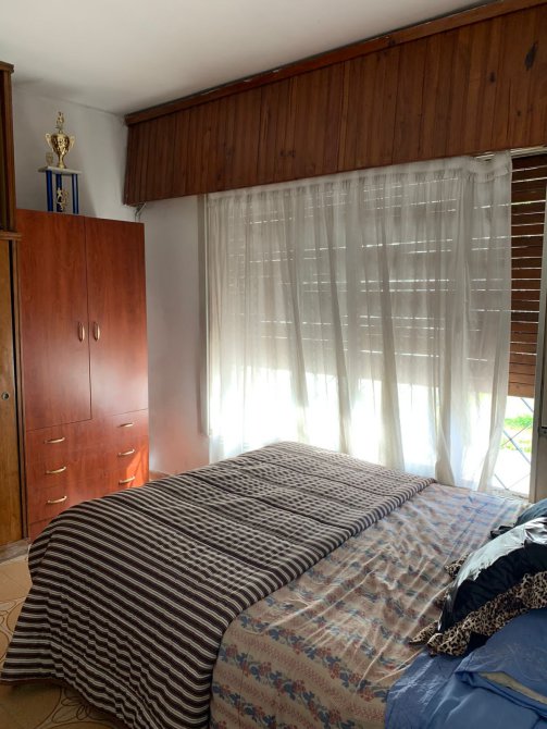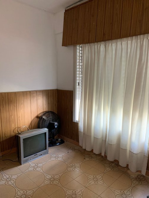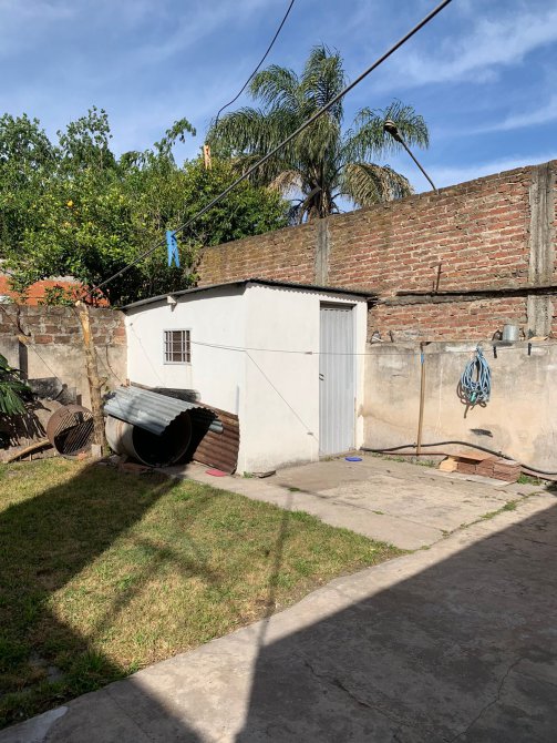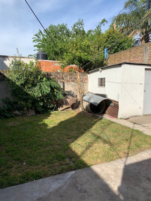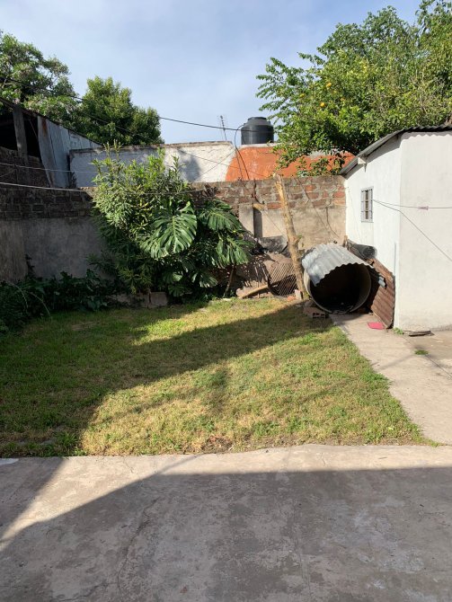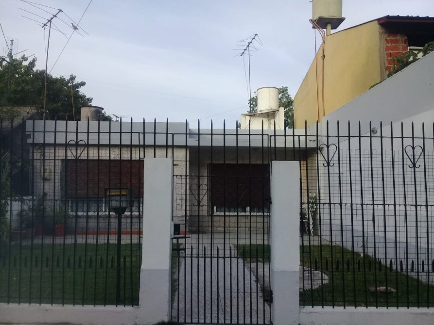 Casa con jardín al frente, con rejas; entrada a un living-comedor con piso cerámico; cocina con piso cerámico, pared azulejada, mesada, bajo mueble y alacena en melanina y Termotanque; tres dormitorios con pisos cerámicos; baño con piso cerámico, paredes azulejadas, con inodoro, bidé, vanitory, espejo y ducha; patio al fondo con jardín y galponcito; techo de losa.
