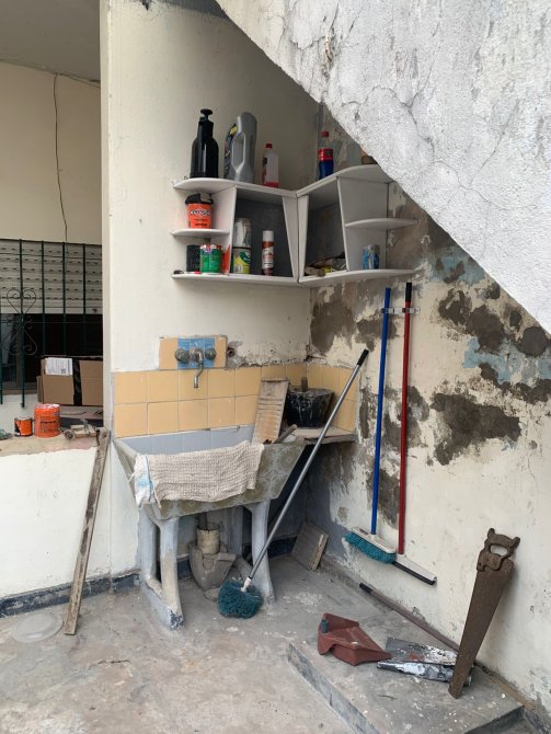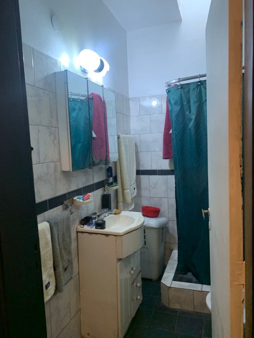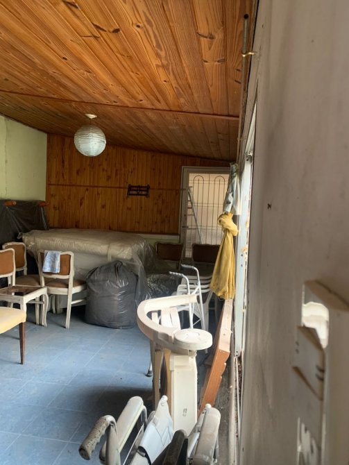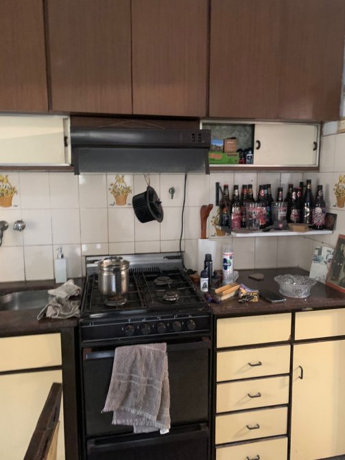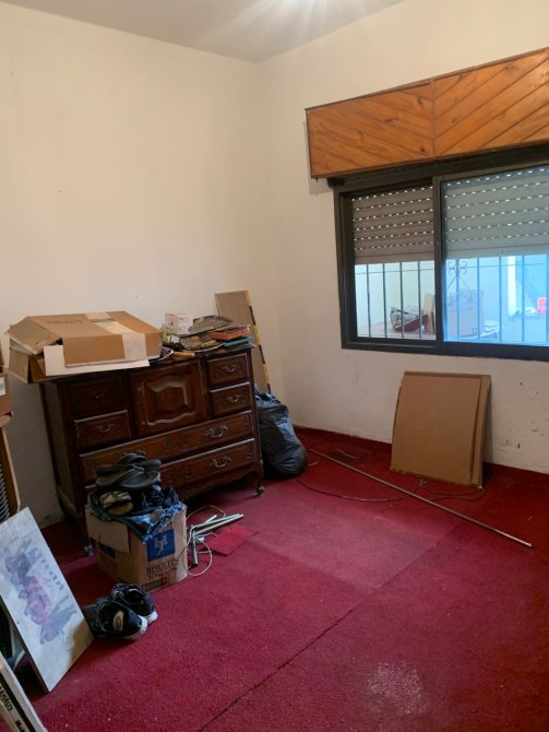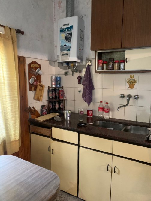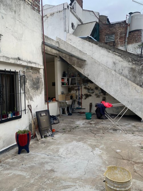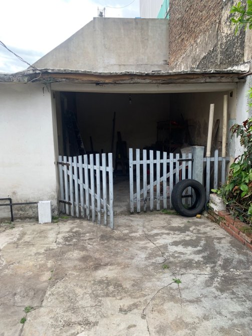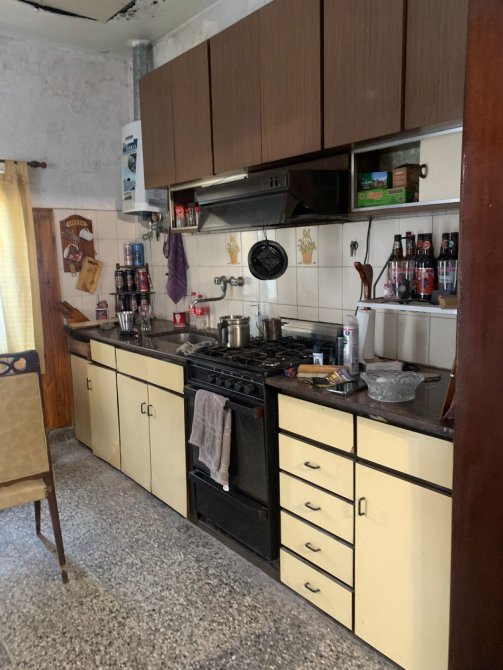 Casa con entrada de auto pasante; living con piso de mosaico; cocina-comedor con piso de mosaico, pared ceramicada, mesada de granito, bajo mueble y alacena de melamina; dos dormitorios, uno con piso de parquet y otro alfombrado; un baño ceramicado con vanitory, bidet, inodoro y ducha; patio al fondo con pileta para lavar; galpón al fondo con un baño auxiliar; terraza.