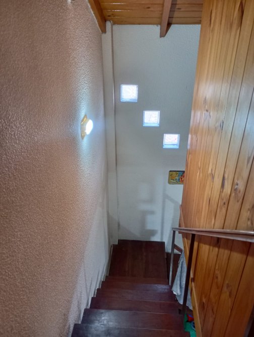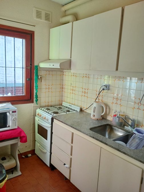 Planta Baja: Cochera; Cocina con piso cerámico, mesada de granito, bajo mueble y alacena de madera; living-comedor con piso cerámico; un baño; patio con parrilla.