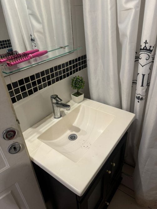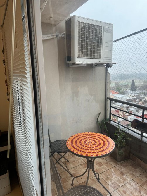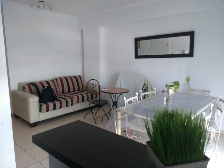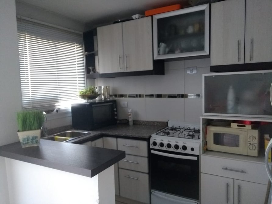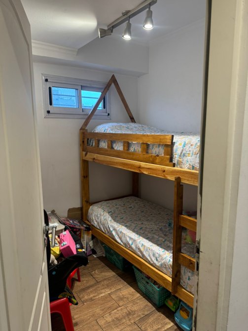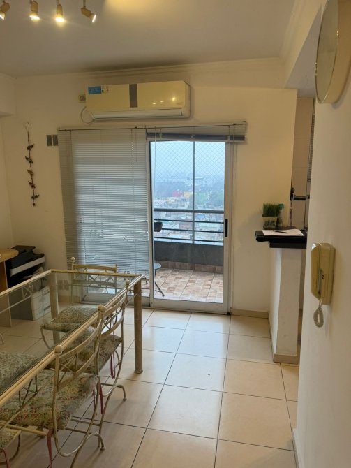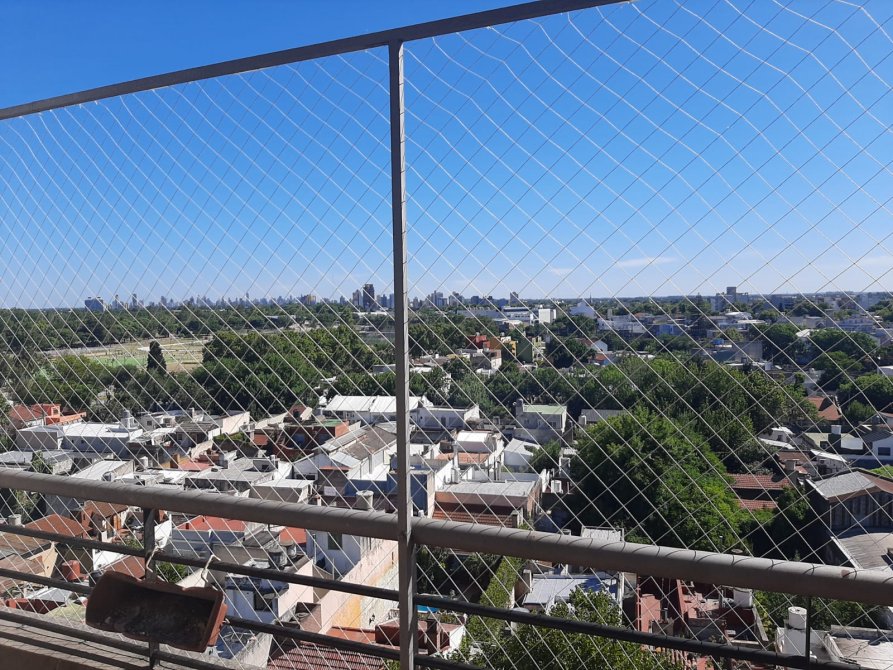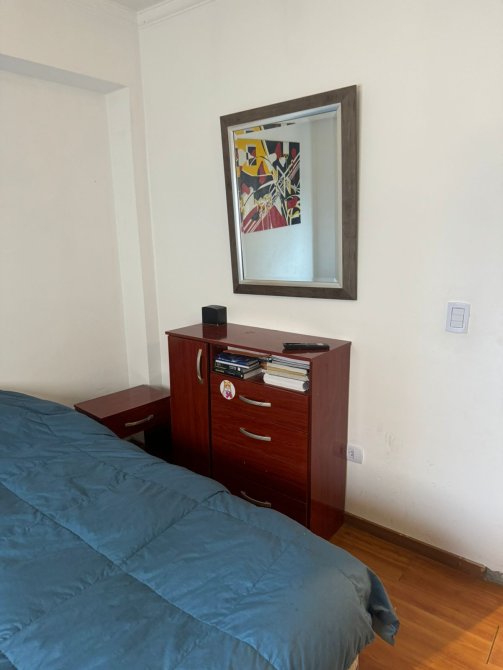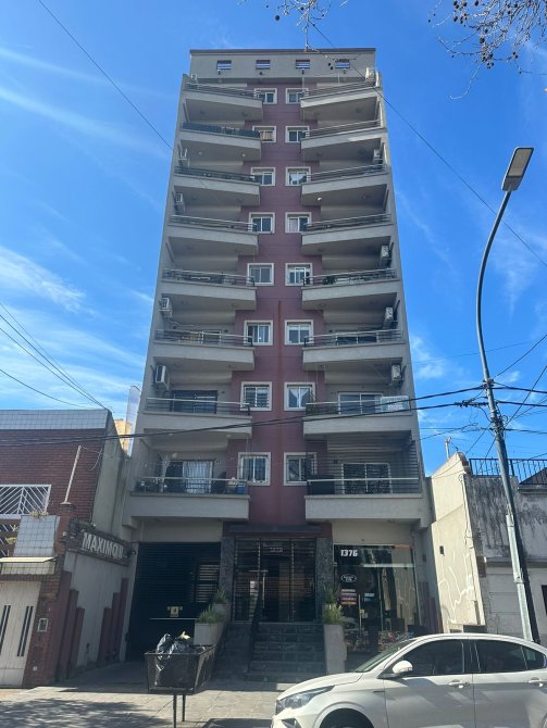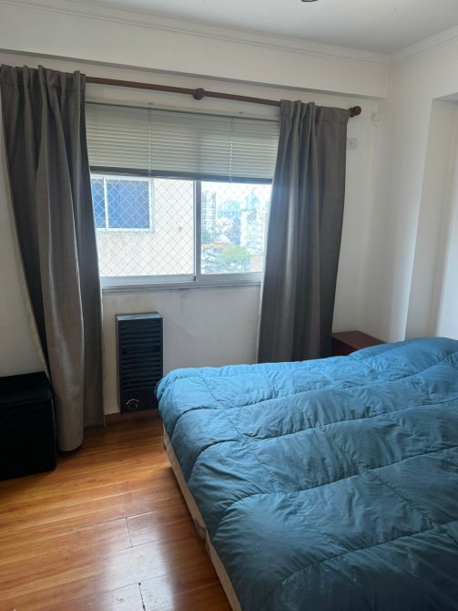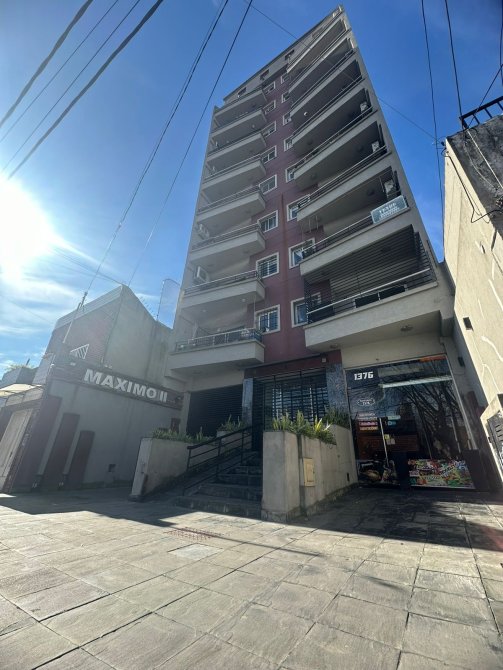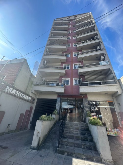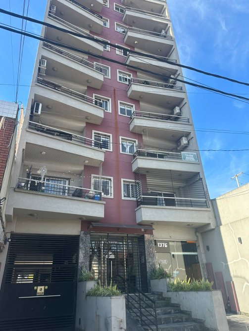 Departamento en 8° Piso al Frente con cocina-comedor con piso cerámico, desayunador, mesada de granito con bajo mueble y alacena de melamina; balcón a la calle; un pequeño dormitorio con piso cerámico; un baño con piso y paredes ceramicadas, inodoro, bidet, ducha y vanitory; un segundo dormitorio con piso flotante y placard empotrado.