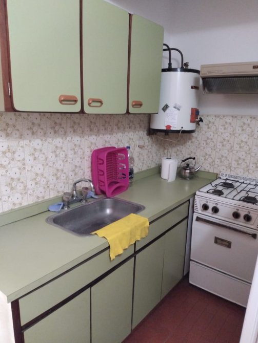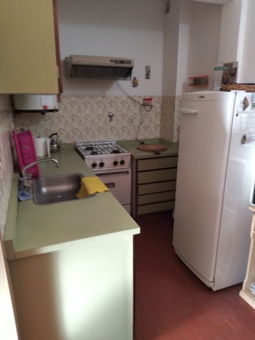Departamento en Contrafrente con cocina con mesada, bajo mueble y alacena: living-comedor con piso cerámico; un dormitorio con piso cerámico y placard empotrado. El edificio cuenta de terraza lavadero en común.