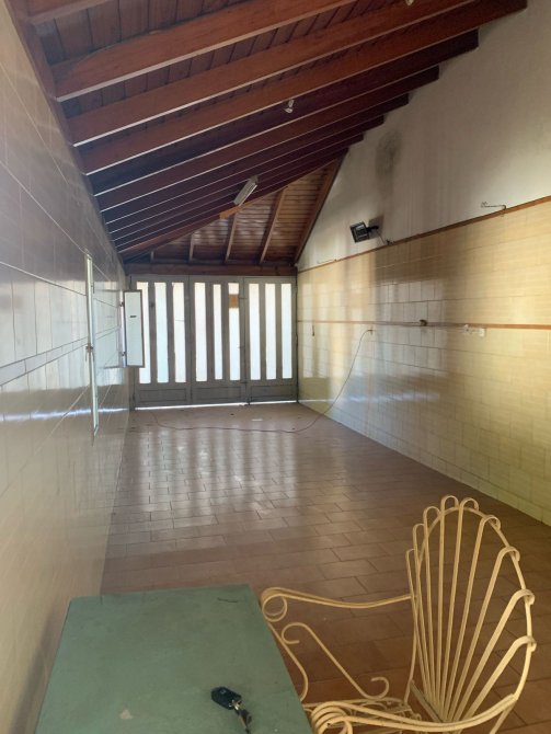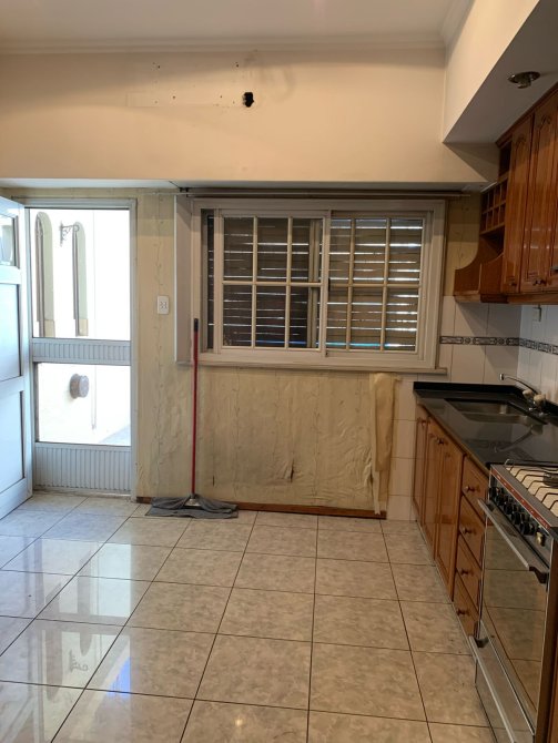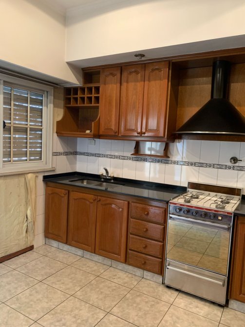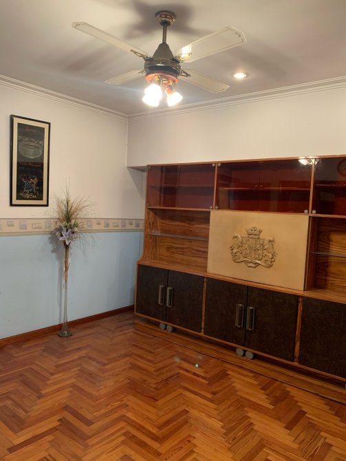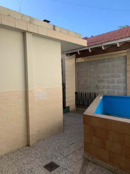 - Departamento al Frente con garaje para dos autos; living-comedor; cocina-comedor; tres dormitorios; un baño azulejado; patio con pileta; terraza con galpón.