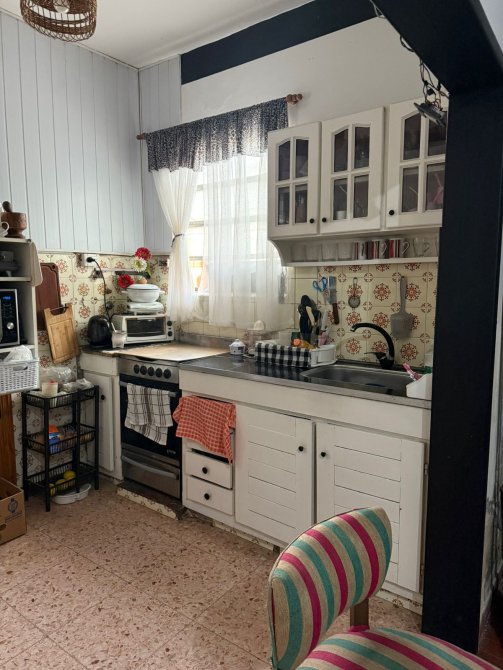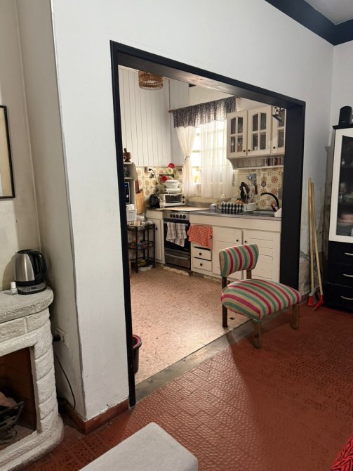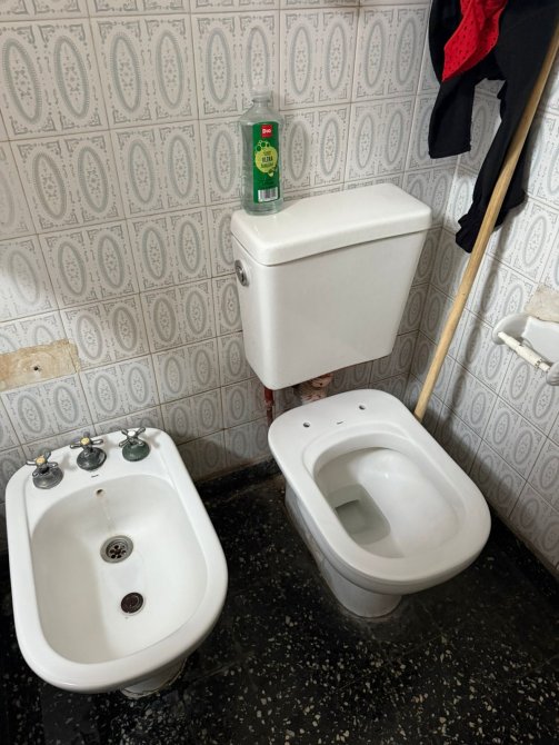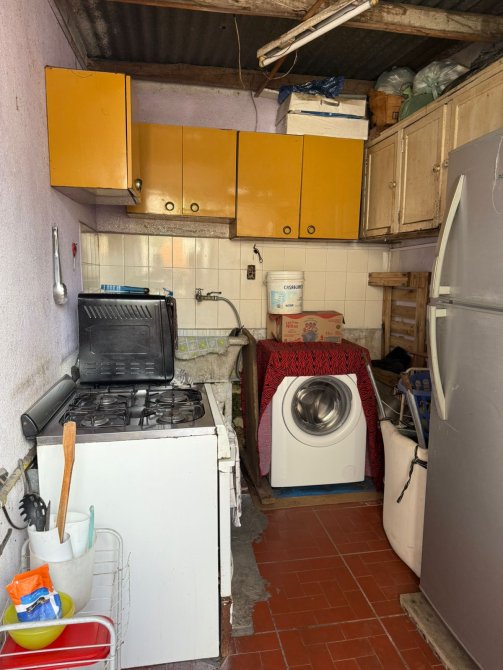 Departamento al Fondo con cocina-comedor con piso cerámico, bajo mueble y alacena de madera; living-comedor con piso cerámico; dos dormitorios con piso cerámico; un baño ceramicado completo con inodoro, bidet, lavamanos y ducha; lavadero y patio con parrilla.