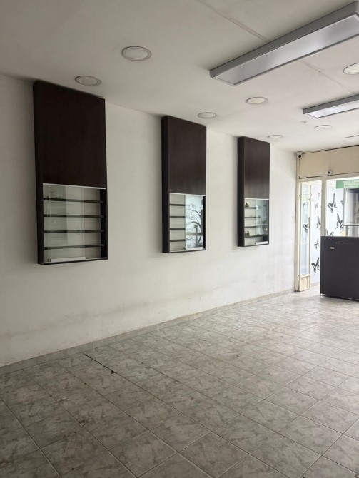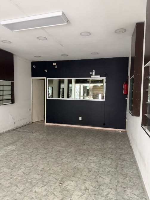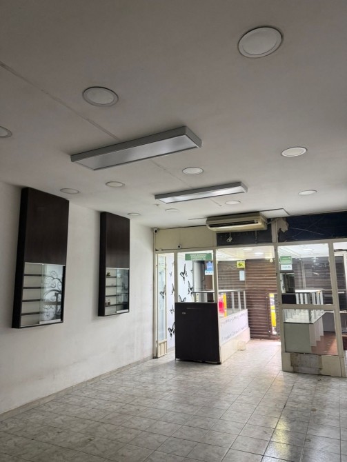 Local de 4,50 x 30 metros con piso cerámico, vidriera, cortina enrollar, un baño.