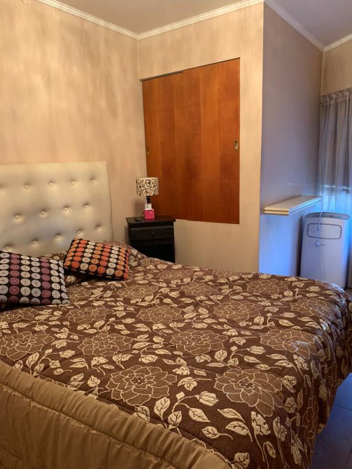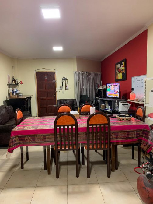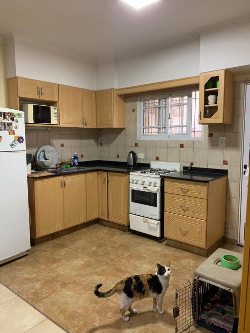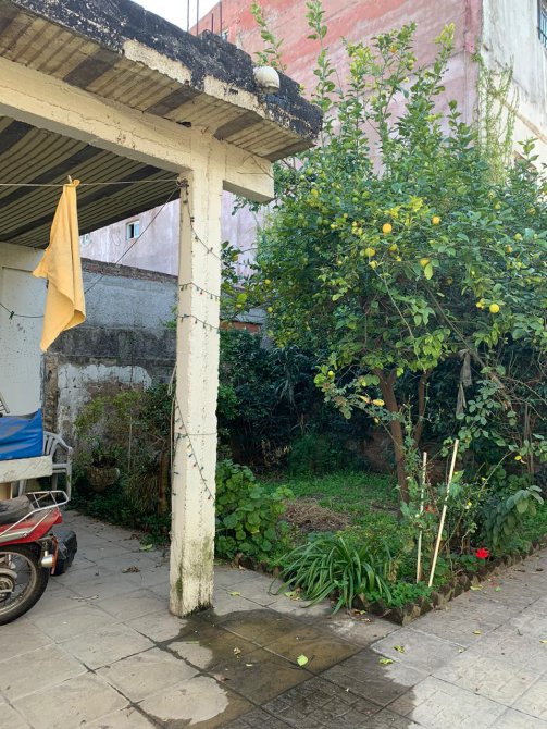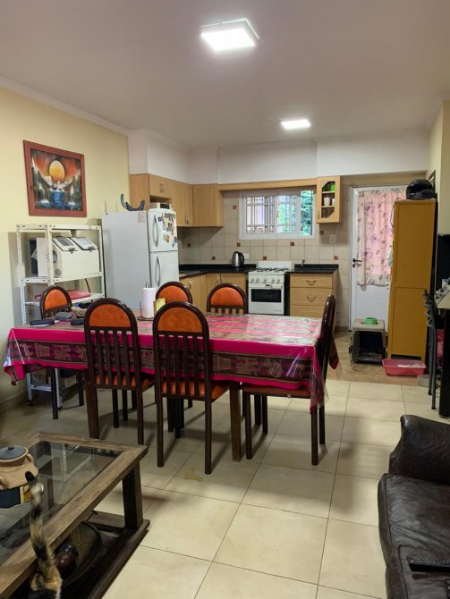 Casa con jardín al frente; entrada de auto cubierta; living-comedor con pisos cerámico con estufa; cocina-comedor ceramicada con bajo mueble, alacena, mesada de mármol granito sierra chica; un baño ceramicado completo con vanitory y mampara de vidrio; dos dormitorios ceramicados cada uno de ellos con placard; patio con pileta para lavar; quincho y fondo libre.