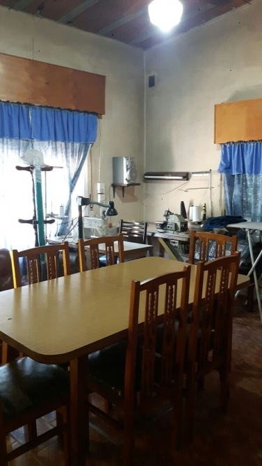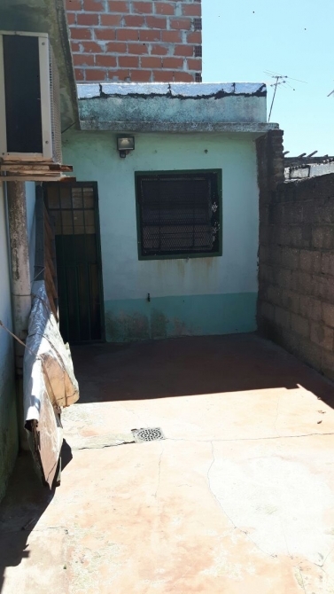 Casa al fondo con techo de vigueta con living con piso cerámico y estufa; cocina-comedor con piso cerámico, pared ceramicada, mesada, bajo mueble, alacena, calefón, estufa y spar; dos dormitorios con pisos