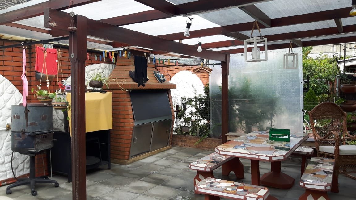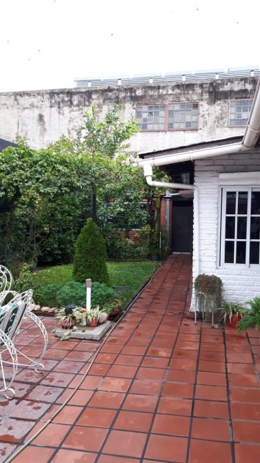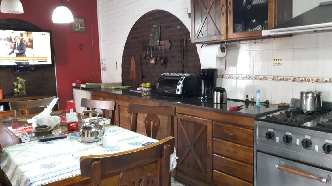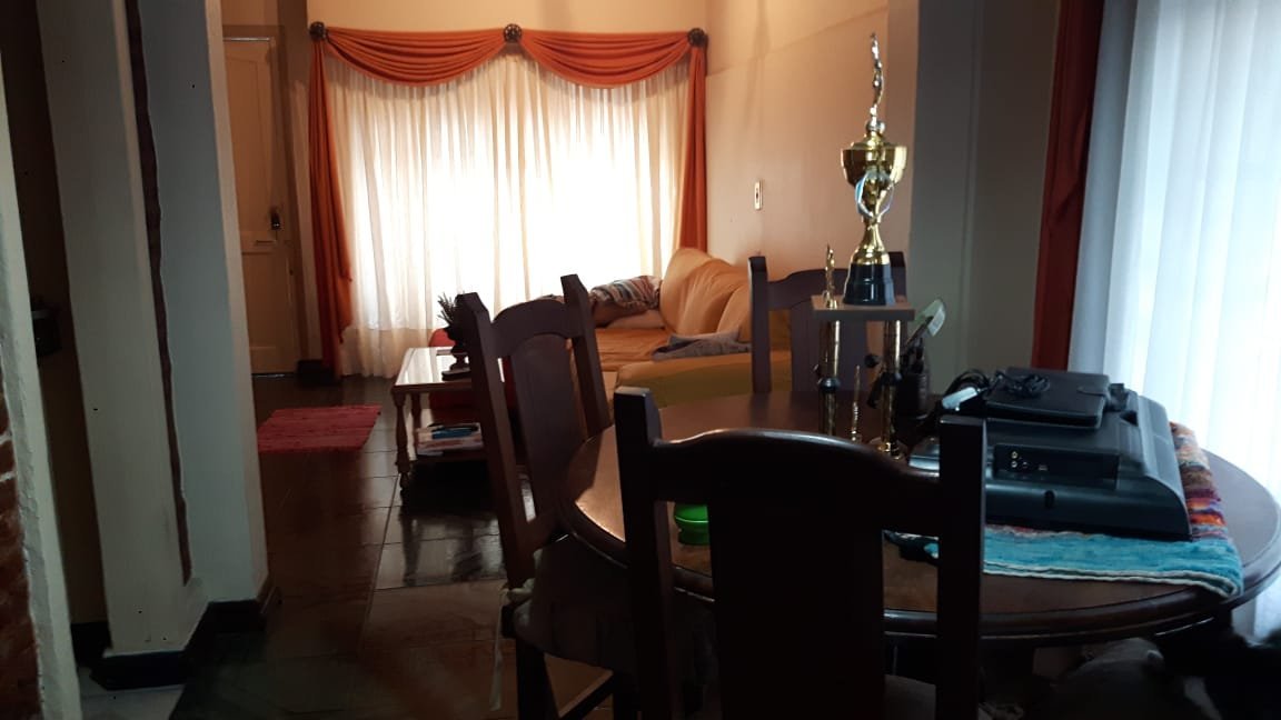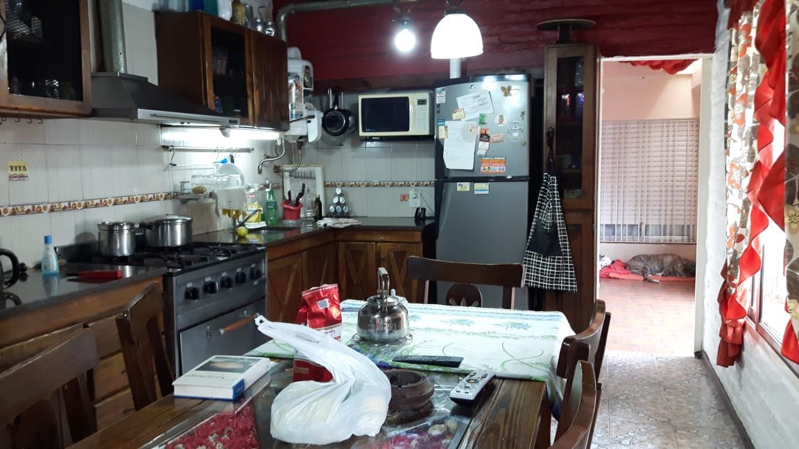 - Departamento atrás con techo de chapa compuesto por comedor diario con piso cerámico; cocina-comedor ceramicada con mesada de mármol ónix reconstituido, bajo mueble y alacena en madera, piso de mosaico; dos dormitorios, uno de ellos con piso alfombrado y otros con piso cerámico; un baño ceramicado; galpón al fondo con techo de chapa.