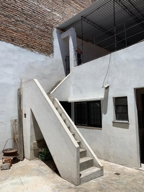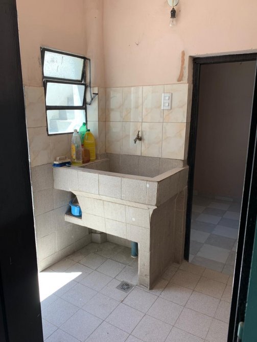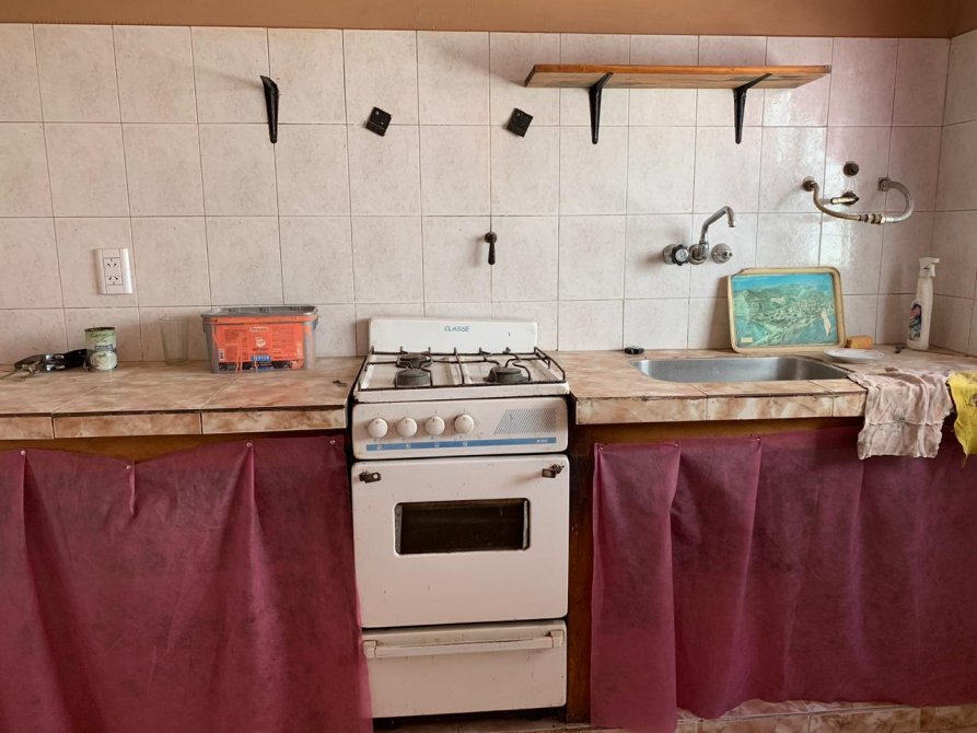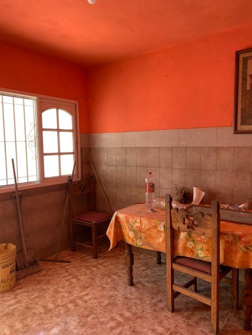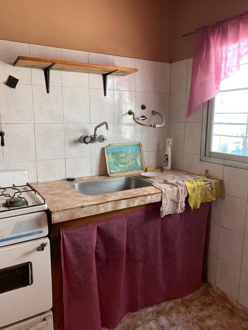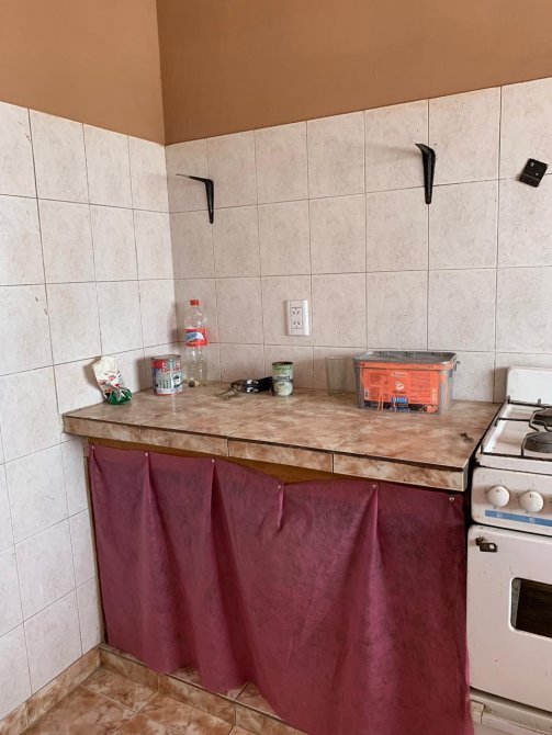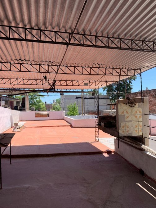 Casa con techo de losa compuesta por entrada de auto; comedor con piso cerámico; cocina con mesada de material y piso cerámico; dos dormitorios con piso cerámico; lavadero;un baño completo ceramicado con termo eléctrico; patio atrás; terraza con techo de chapa y parrilla.