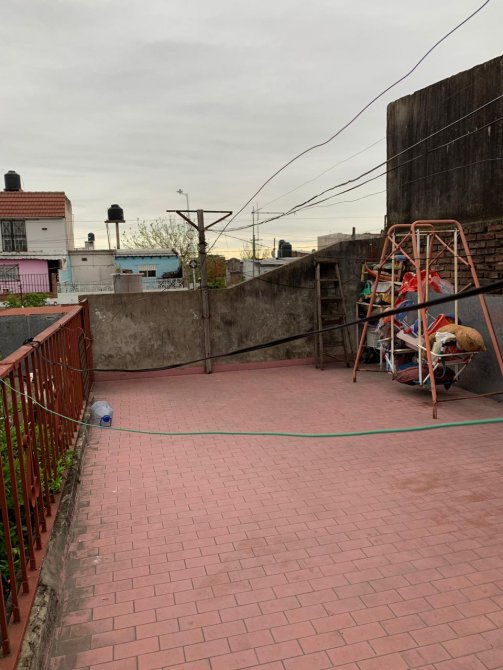Casa en dos plantas: - Planta Baja: compuesta por garaje con piso cerámico; living-comedor con piso cerámico; patio con piso cerámico; un baño azulejado completo con inodoro, bidet, lavamanos de pie y ducha; cocina-comedor con pared y piso cerámico, mesada de granito color negro, bajo mueble de formica y calefón; un dormitorio con piso cerámico. - Planta Alta: dos dormitorios con piso cerámico cada uno; un baño terminar; patio-terraza amplio. Techo de losa.