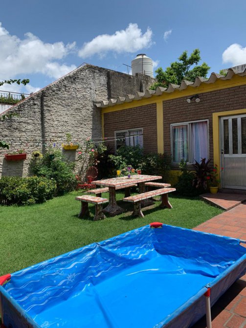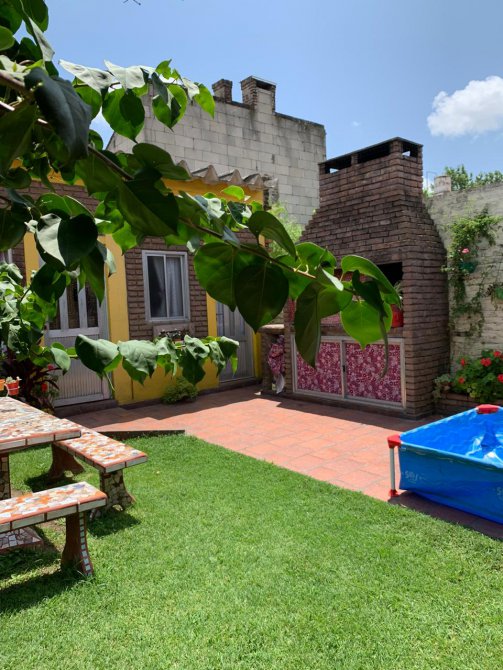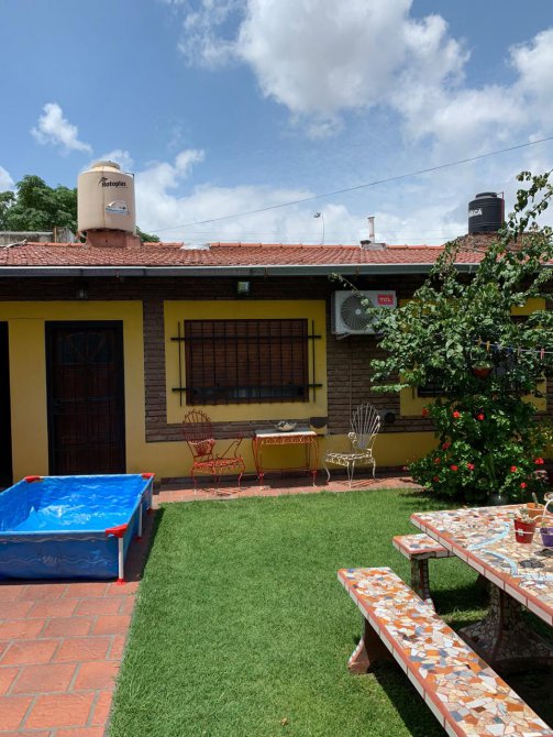 Casa con entrada de auto cubierta con techo de chapa. Ingreso a living-comedor con piso de mosaico; cocina nueva con pisos y paredes ceramicadas, con mesada de granito gris mara, bajo mueble y alacena en melamina color blanco; hall de distribución con piso cerámico; 3 dormitorios con piso cerámicos cada uno de ellos; un baño ceramicado completo con inodoro, bidet, vanitory y bañera; lavadero; patio atrás con parrilla y jardín; quincho al fondo con parrilla y un baño auxiliar.