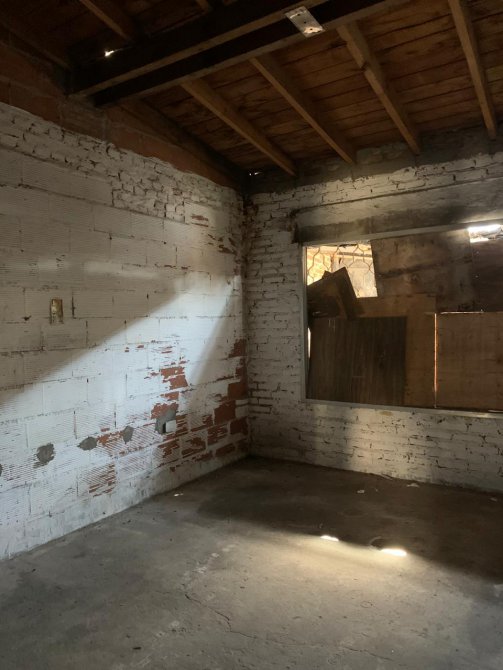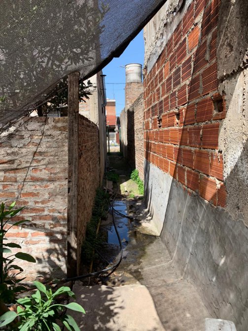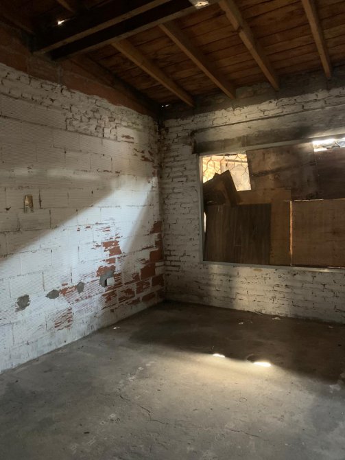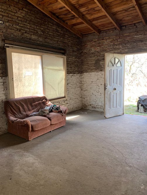 Departamento en Planta Baja al Fondo con techo de tejas, revestido en madera; entrada por pasillo; living-comedor con piso de cemento; un baño ceramicado completo; dos dormitorios con piso de cemento; cocina-comedor sin revestir con piso de cemento; patio atrás. Falta Instalaciones.