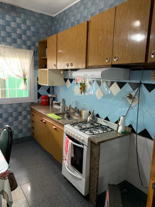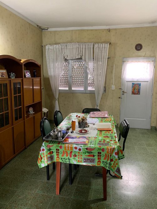 - Al frente: Casa al frente con living-comedor con piso de mosaico; cocina con mesada de granito, bajo mueble y alacena de formica, piso y pared ceramicada; dos dormitorios con piso de mosaico y placard; un baño ceramicado completo con inodoro, bidet, vanitory y ducha; patio con lavadero; terraza libre con una habitación.