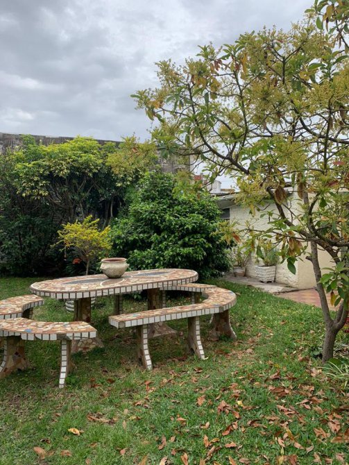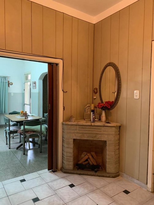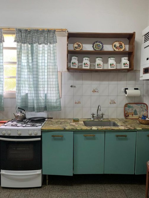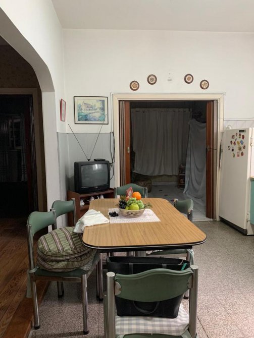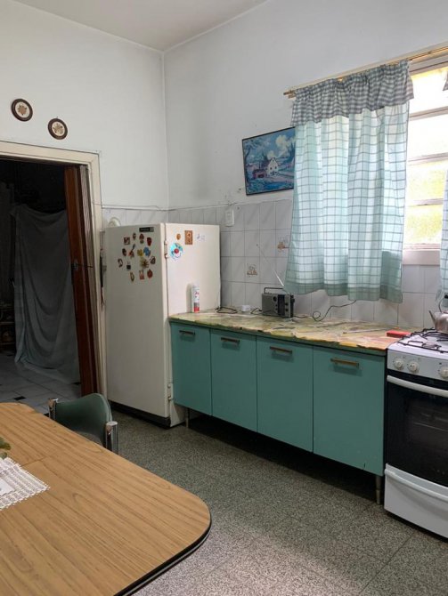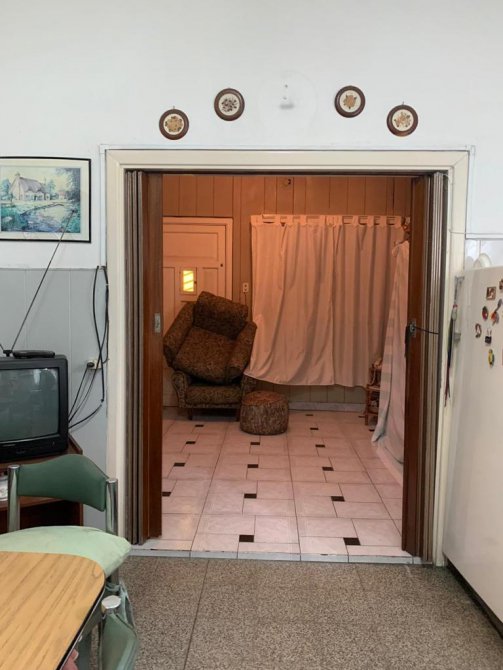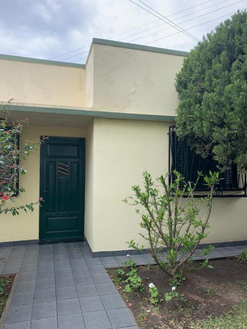 Casa compuesta con jardín al frente con pasillo lateral; cocina con pared azulejada, piso de mosaico, mesada de mármol, bajo mueble de formica y calefón; un dormitorio con piso de madera; comedor apto segundo dormitorio con piso de madera; living con piso cerámico y hogar; un baño azulejado completo con inodoro, bidet y lavamanos; patio con parrilla y fondo libre.