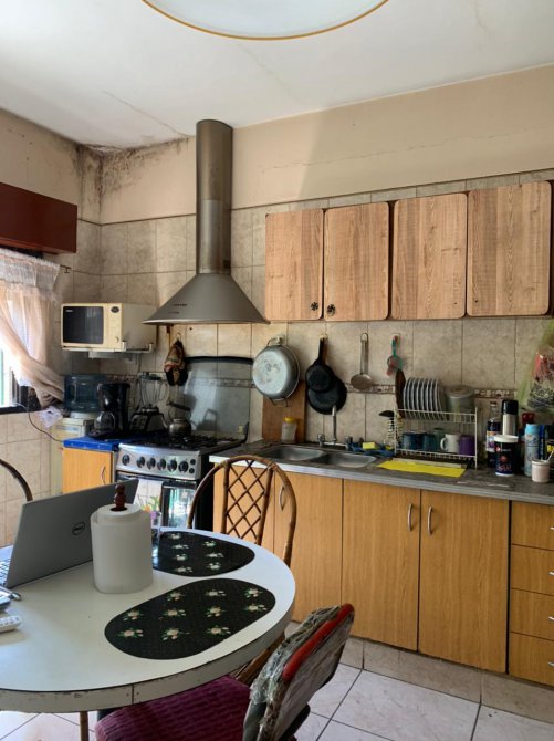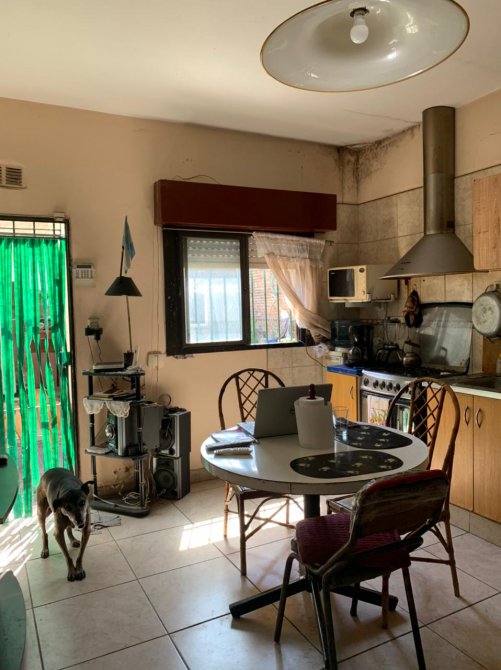 Casa compuesta por cocina-comedor ceramicada con mesada, bajo mueble y alacena de madera; living-comedor; un baño ceramicado completo con inodoro, bidet lavamanos y ducha; dos dormitorios con piso cerámico; garaje pasante; lavadero con baño auxiliar; galpón al fondo.