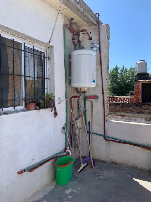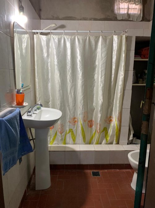 Planta Alta: Departamento tipo monoambiente con un patio chico con termotanque; cocina-comedor con piso cerámico y mesada; un baño ceramicado con inodoro, bidet, lavamanos y ducha. Techo de vigueta.