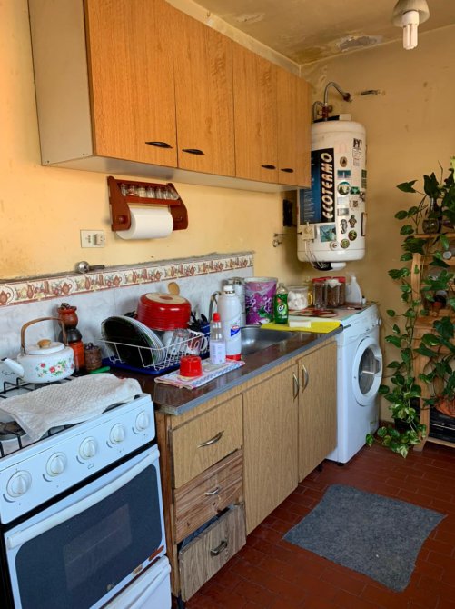- Departamento Nº 3 en Planta Baja compuesto por living-comedor con piso de mosaico; cocina-comedor con pared azulejada, piso cerámico, bajo mueble y alacena de madera; dos dormitorios con piso cerámico y placard; un baño azulejado completo con inodoro, bidet, lavamanos y ducha; patio al frente y patio al fondo. Total 61,35 metros cuadrados cubiertos