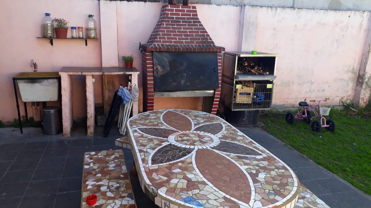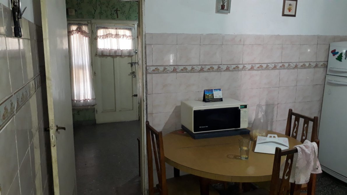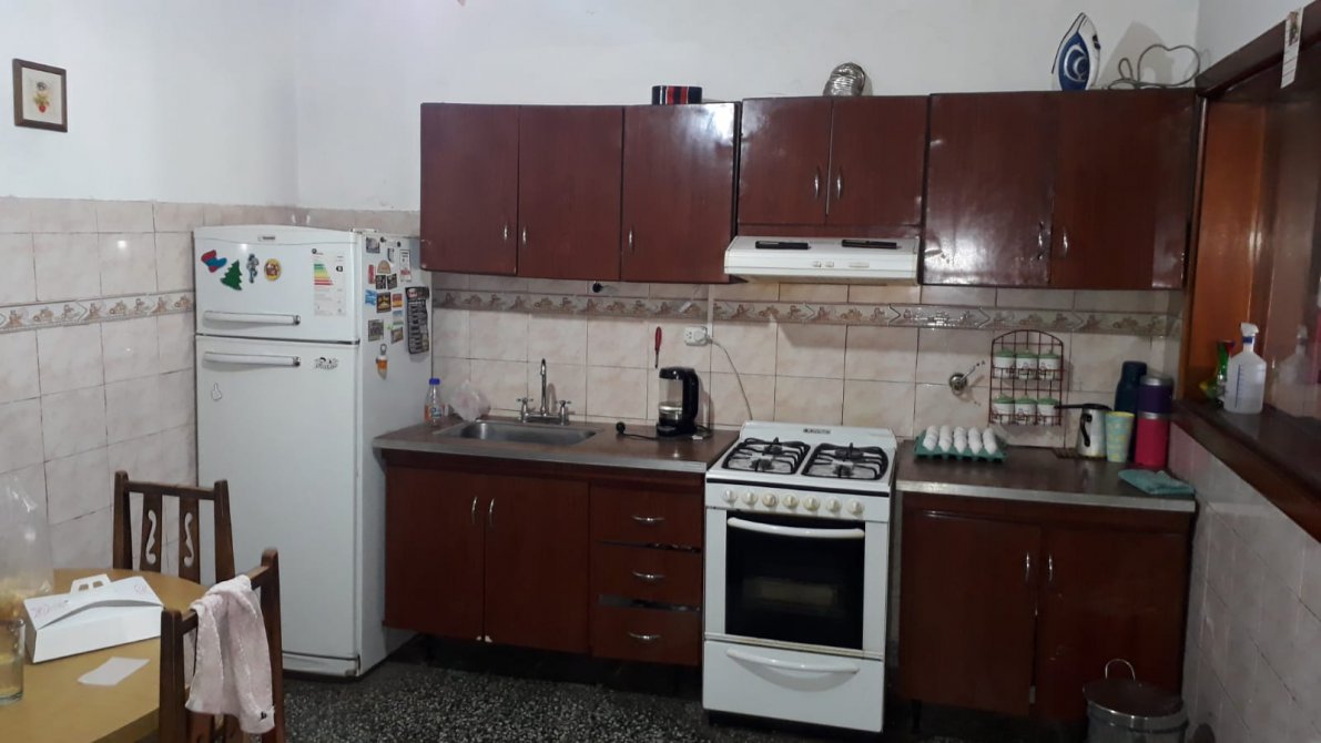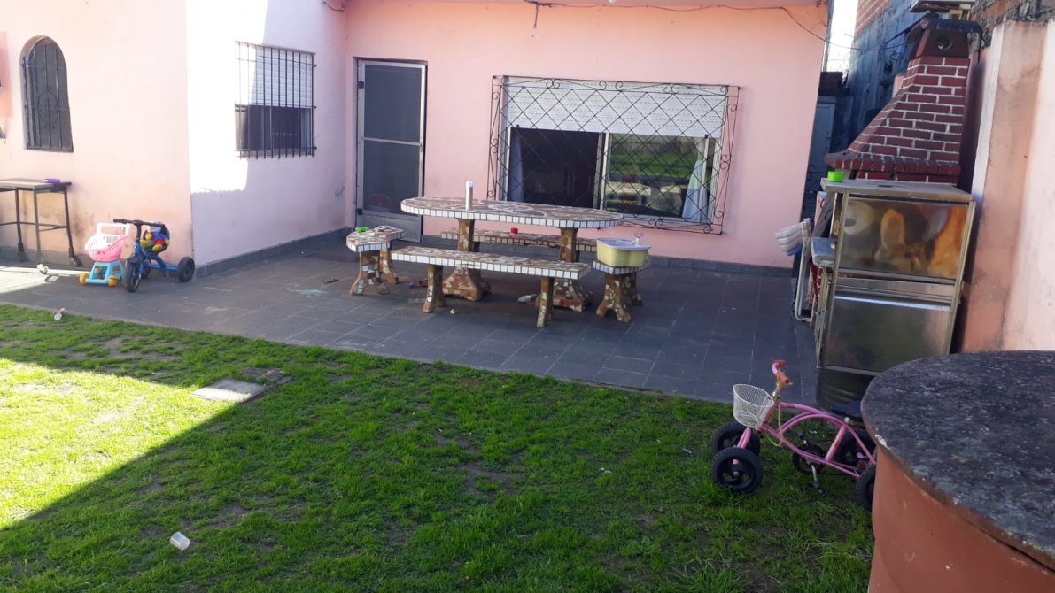 Casa con jardín al frente con entrada auto; comedor diario con piso de cerámico; cocina-comedor con piso mosaico, pared ceramicado, masada de mármol con pileta simple, bajo mueble y alacena en melamina; living con piso cerámico; dos dormitorios con piso cerámico y un tercer dormitorio con piso flexiplast ; lavadero azulejado con termotanque; un baño ceramicado completo con lavamanos de pie, inodoro, bidet y bañera; patio con parrilla y fondo libre.