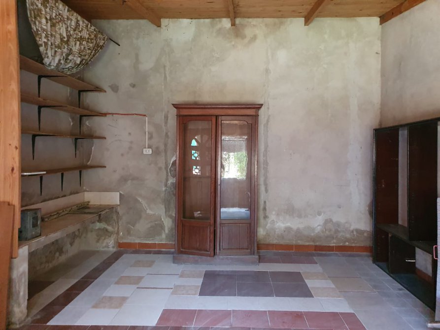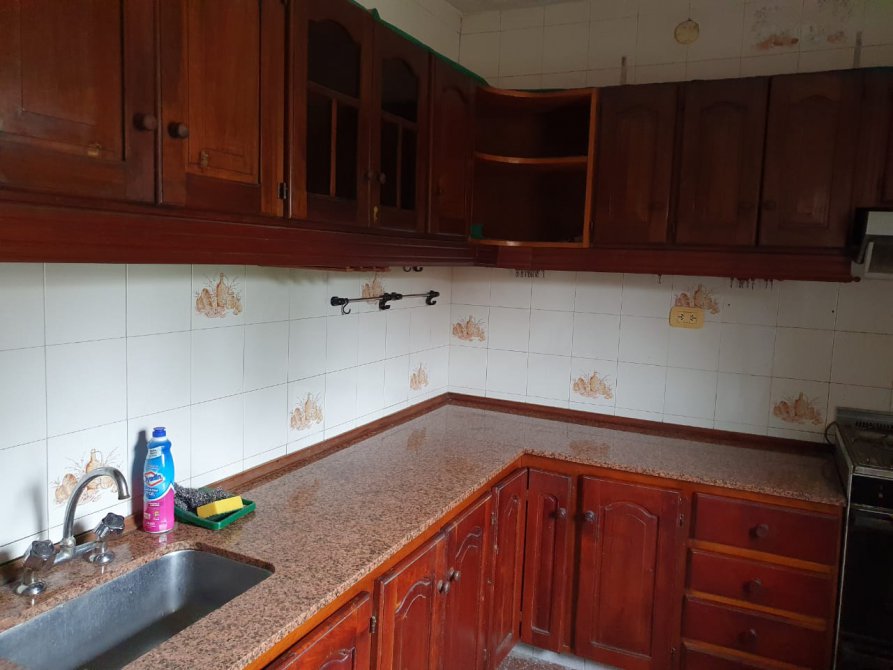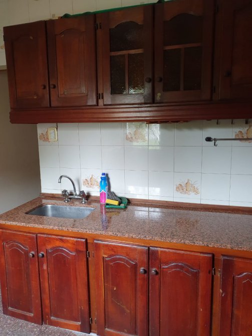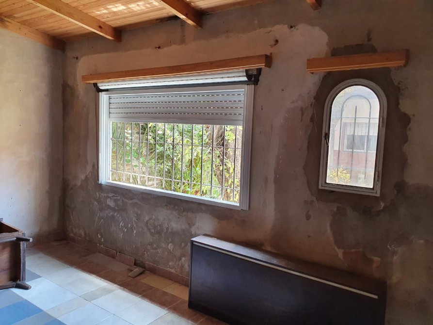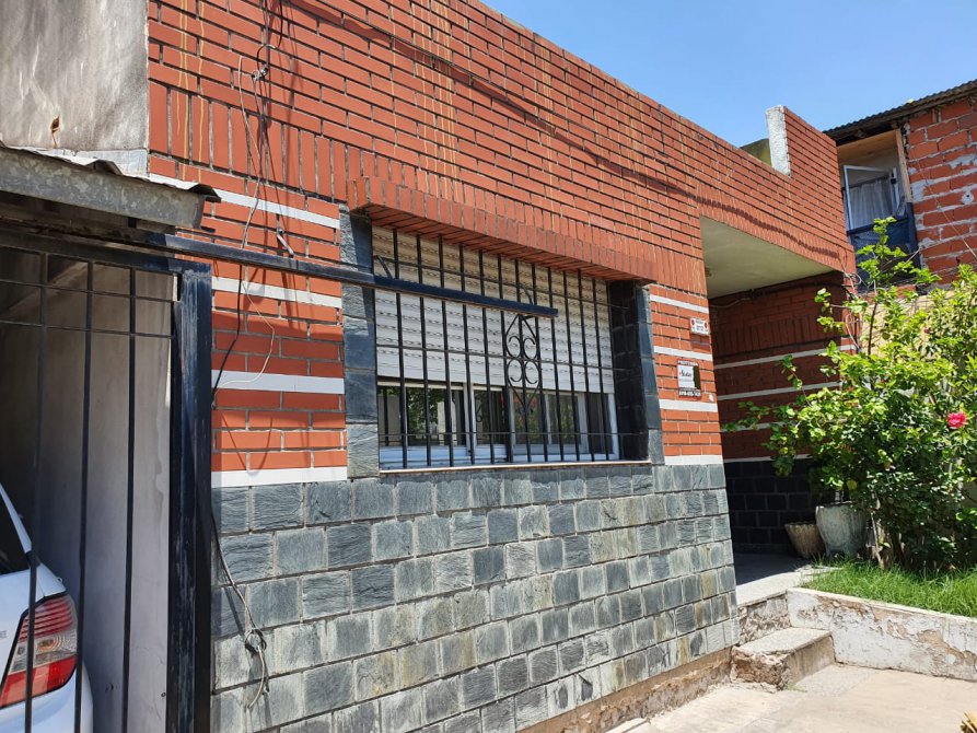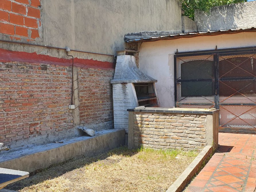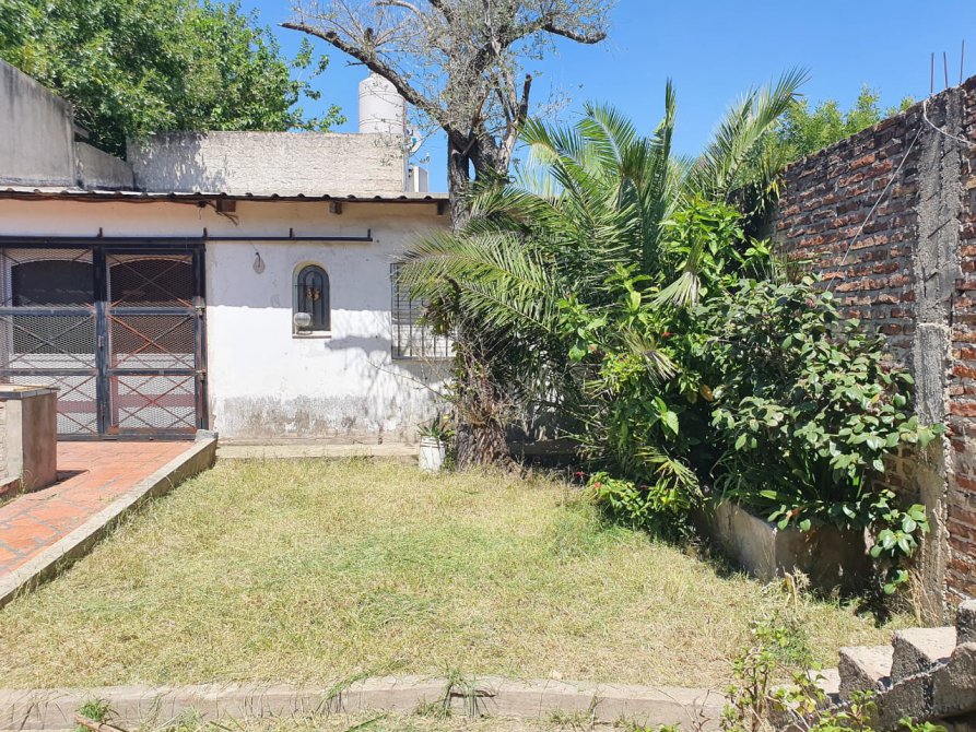 Casa al Frente con techo de losa compuesta por jardín al frente; entrada de auto pasante; living-comedor con piso cerámico; un baño ceramicado con mampara y vanitory; una cocina con pisos y paredes ceramicadas con mesada de granito, bajo mueble y alacena en madera; dos dormitorios con piso de mosaico; terraza; patio; fondo libre; quincho con piso cerámico, parrilla y techo de chapa.