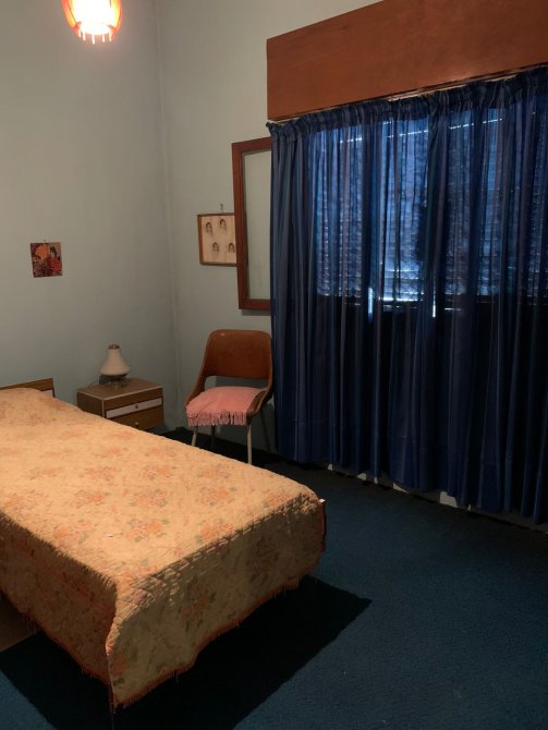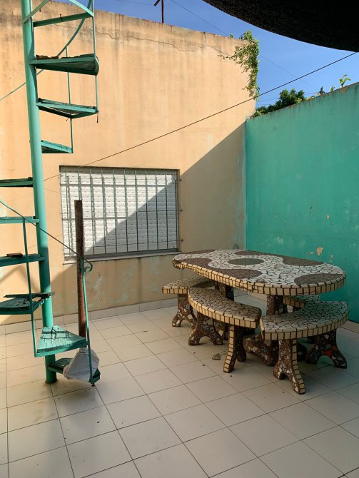 Casa con jardín al frente compuesta de comedor diario con piso cerámico con hogar; cocina con piso cerámico, pared azulejada, mesada de mármol, con bajo mueble y alacena de formica; tres dormitorios, dos de ellos alfombrados y otro con piso de parquet; un baño azulejado completo con inodoro, lavamanos de pie y ducha; patio con piso cerámico con pileta para lavar; terraza; pasillo lateral.
