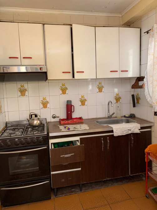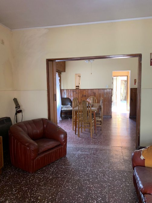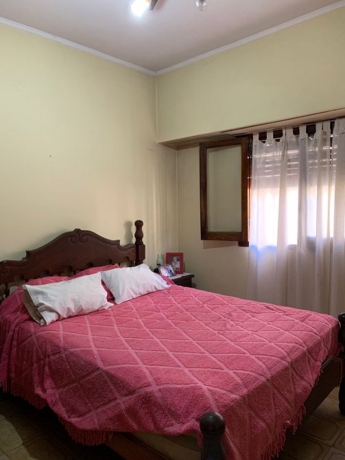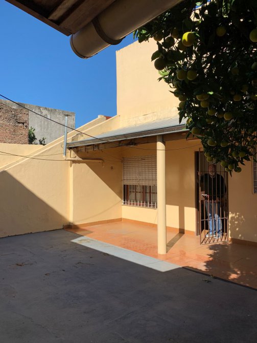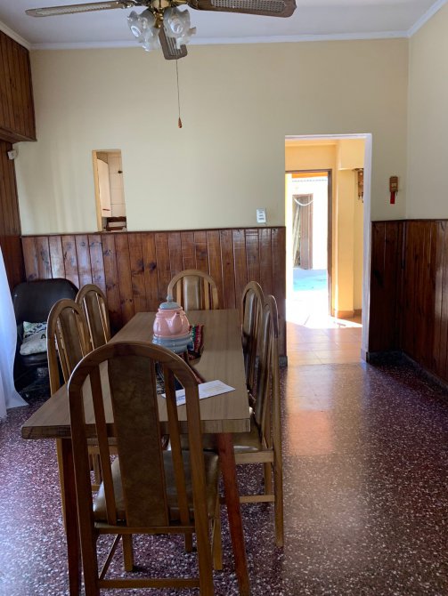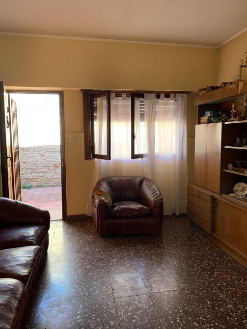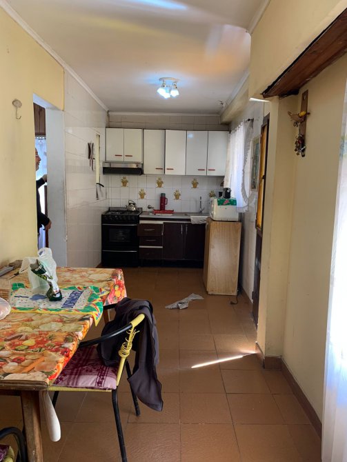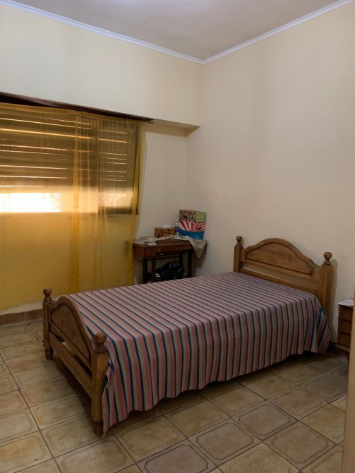 Departamento en Planta Baja al Fondo compuesta con pasillo de entrada; patio al frente; living-comedor amplio con piso de mosaico; cocina con piso y paredes ceramicadas, mesada de mármol, bajo mueble y alacena en formica; comedor diario con piso cerámico; un baño azulejado completo con inodoro, lavamanos y ducha; dos dormitorios con pisos cerámicos; patio al fondo con parrilla, lavadero y terraza con galpón. BUEN ESTADO