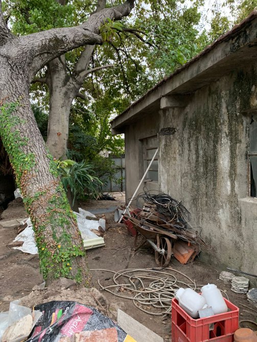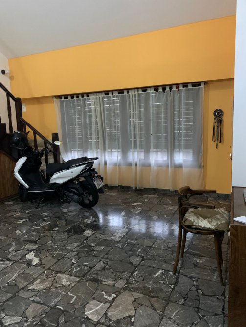 - Planta Baja: con garaje; living-comedor amplio con piso de mosaico; toilette ceramicado con inodoro y lavamanos; cocina-comedor ceramicada con piso de mosaico, mesada, alacena y bajo mueble de formica; lavadero; patio; fondo libre.