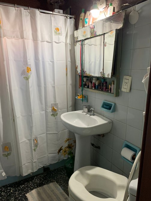 - Departamento al Fondo con living-comedor con piso de mosaico; una cocina con piso de mosaico, mesada de mármol ónix reconstituido y bajo mueble de formica; un dormitorio; un baño azulejado completo con inodoro, lavamanos y ducha; patio al frente; lavadero; quincho al fondo amplio; galpón. Apto para hacer otros Departamentos