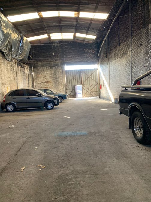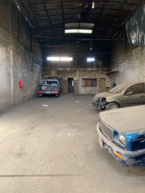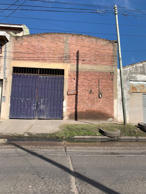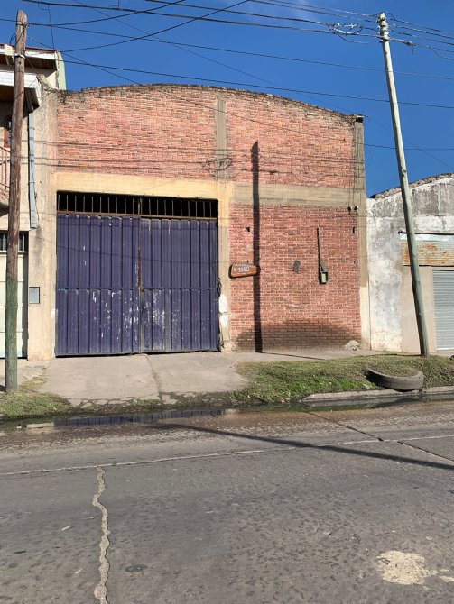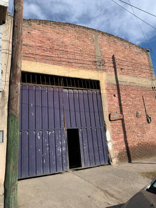 Galpón con techo parabólico, piso de cemento, portón de chapa, pulmón de fondo libre y un baño.