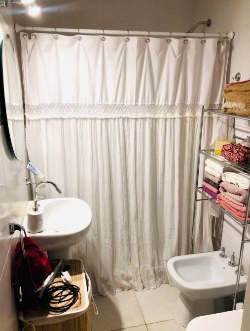 Casa compuesta por cocina-comedor con piso y pared ceramicada, mesada de mármol, bajo mueble de madera, calafon; living con piso cerámico; dos dormitorios con piso cerámicos; baño ceremicado completo con inodoro, bidet, lavamanos de pie y ducha; patio cubierto con policarbonato; lavadero; terraza con cuarto de guardado. La propiedad se encuentra recien pintada.