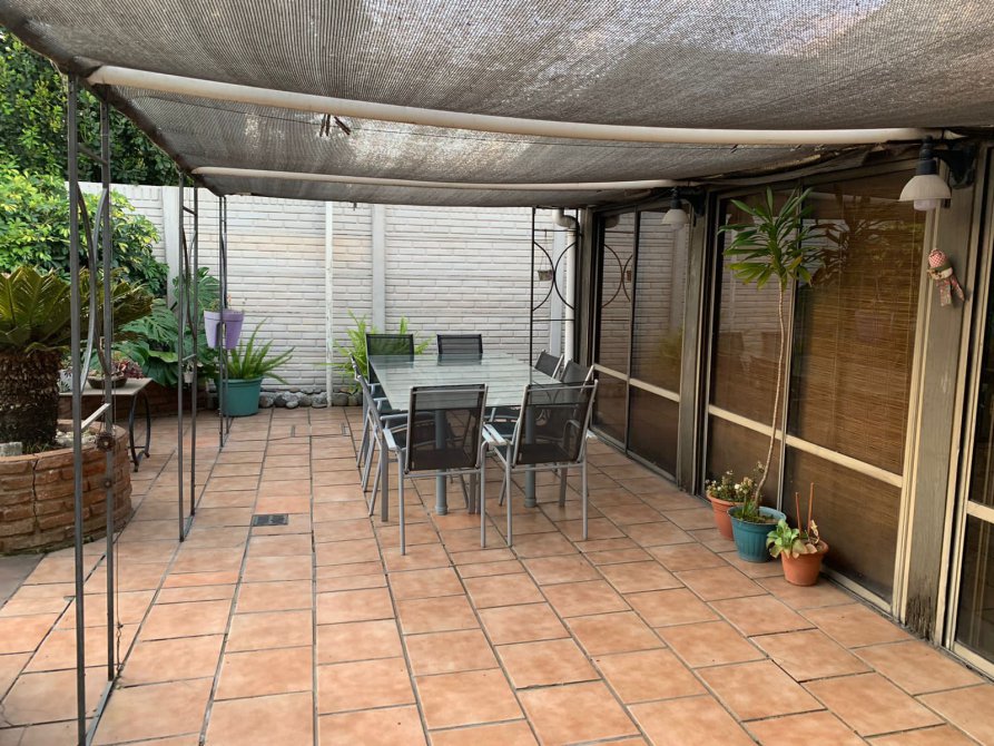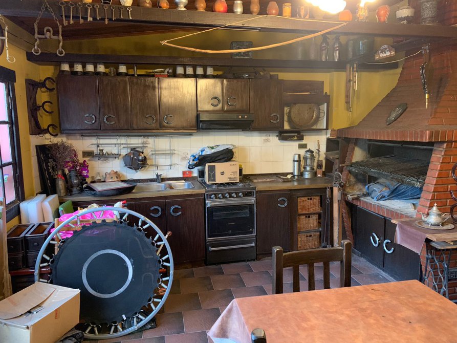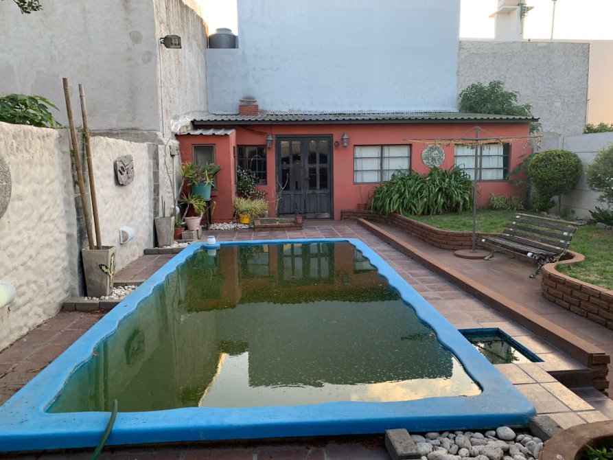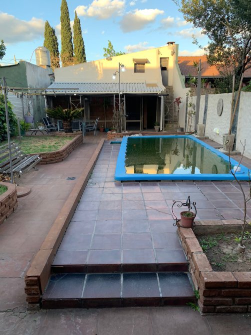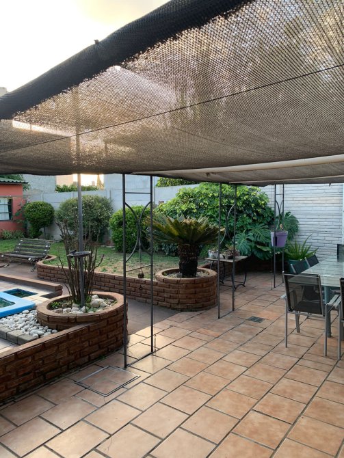 Casa con garaje con piso cerámico; living con piso cerámico; cocina amplia con piso y pared ceramicada, mesada de granito, bajo mueble y alacena de melamina; tres dormitorios con piso de parquet; un baño ceramicado completo con vanitory, inodoro, bidet y ducha; lavadero; jardín de invierno con piso cerámico; un segundo baño ceramicado completo con inodoro, bidet, vanitory y ducha; patio; jardín con pileta de natación; quincho con cocina y parrilla.