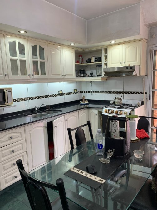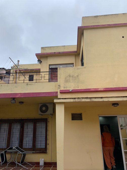 Casa en dos plantas: - Planta Baja: cuenta con jardín al frente, con entrada de auto descubierta; garaje; living-comedor con piso con porcelanatto; toilette ceramicado, con inodoro y vanitory; cocina-comedor, ceramicada en piso y pared, mesada de granito, bajo mueble y alacenas en madera laqueada; patio con fondo libre, parrilla, lavadero y galpón; escalera a la planta alta. - Planta Alta: hall de distribución; patio aterrazado hacia el fondo; baño ceramicado, con vanitory, inodoro, bidé y box de ducha; 3 dormitorios, cada uno con placard y con pisos de parquet, dos de ellos con Aire Acondicionado; balcón al frente.