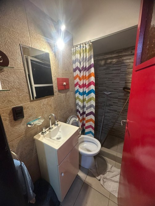 - Primer Piso: un dormitorio con piso ceramico; un baño con vanitory, inodoro y bañera.