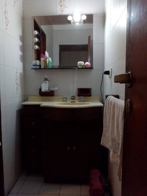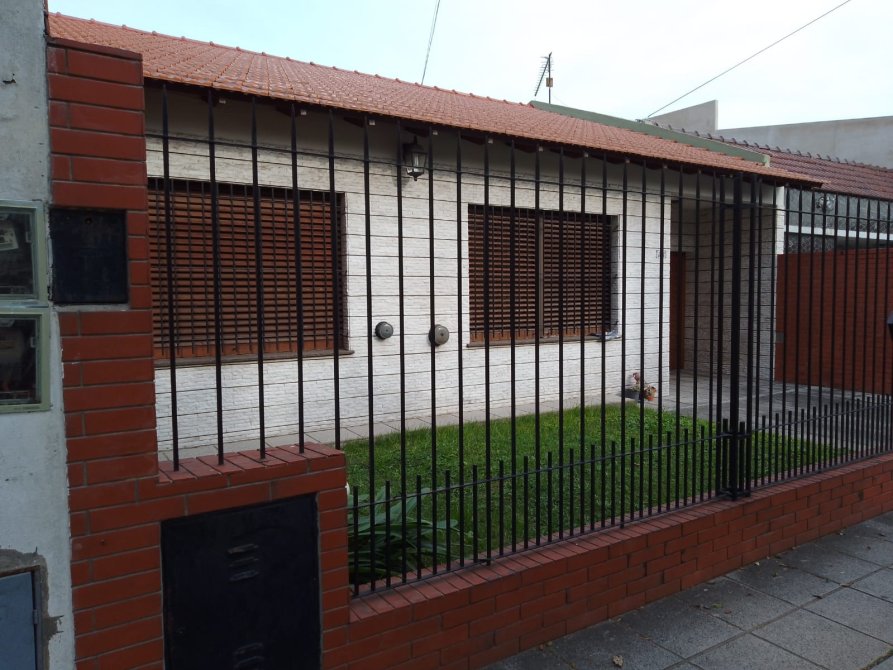 Casa con jardin al frente con entrada de auto; un garaje; living-comedor con piso mosaico; cocina-comedor con piso y pared ceramicada con mesada, bajo mueble y alacena de formica; dos dormitorios con piso ceramico con placard emptorado; un baño principal con ante baño completo; un baño de servicio con ducha; lavadero con termotanque; patio al fondo con galpon.
