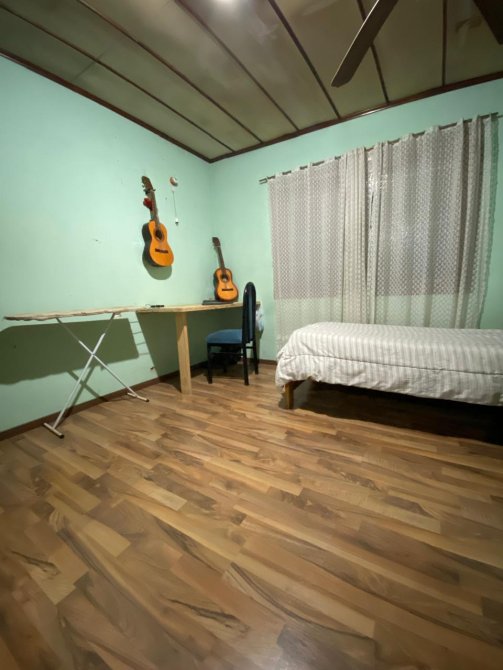 - Casa en Planta Baja con garaje al frente techado; living comedor con piso ceramico; cocina; un baño; dos dormitorios; fondo libre con galpon de guardado. VALOR U$S 80.000.-
