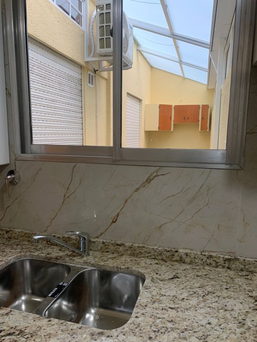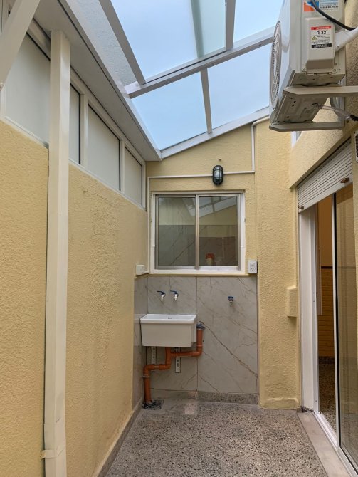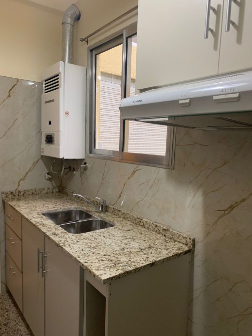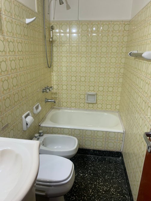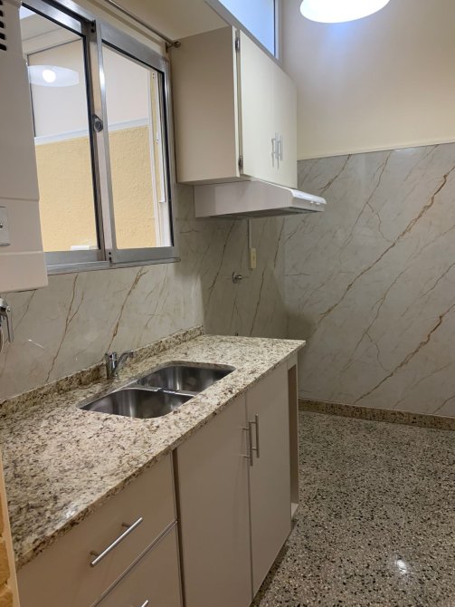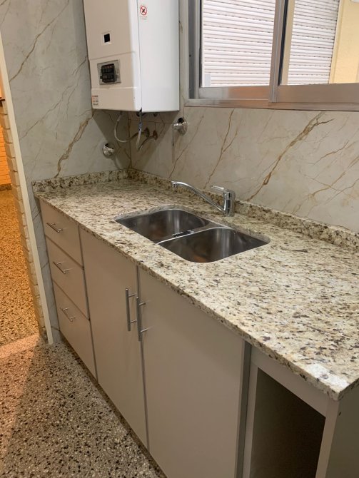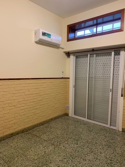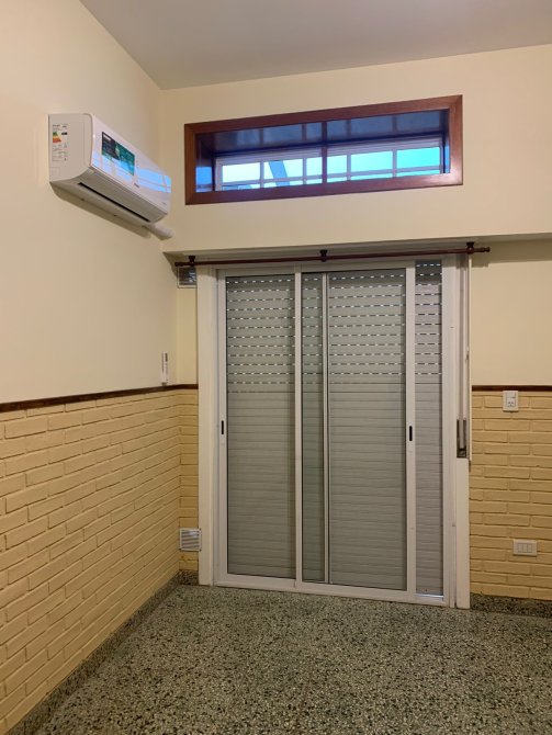 Departamento en Planta Baja con living-comedor con piso de mosaico pulido y un aire acondicionado; una cocina con paredes revestidas en porcelanato, mesada de granito a estrenar, bajo mueble y alacena de melamina; un dormitorio con piso de madera plastificado y un placard; un baño azulejado completo con vanitory, inodoro, bidet y ducha; un patio con lavadero cubierto con techo de aluminio con vidrio esmerilado con motor.