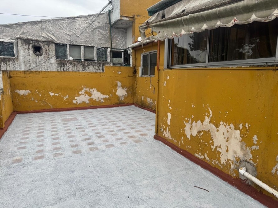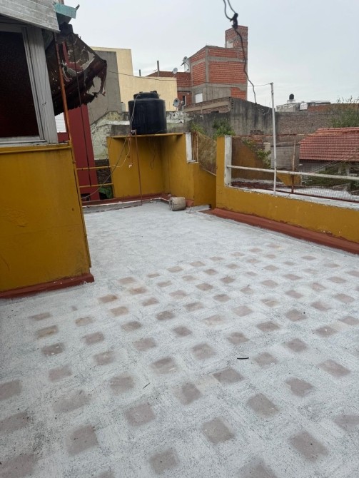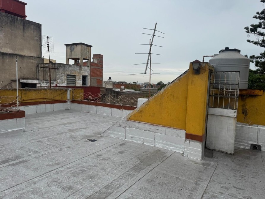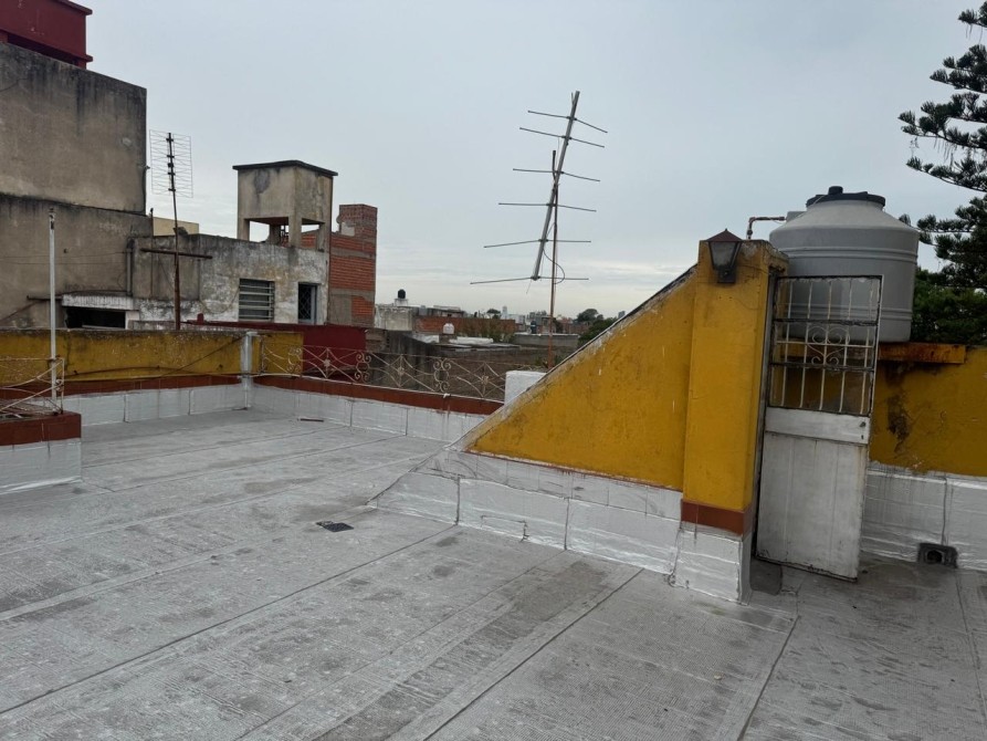 Departamento al frente en Primero Piso con patio-terraza; galpón; jardín de invierno; living-comedor con piso cerámico; cocina; baño completo; un dormitorio; balcón al frente; terraza en segundo piso.